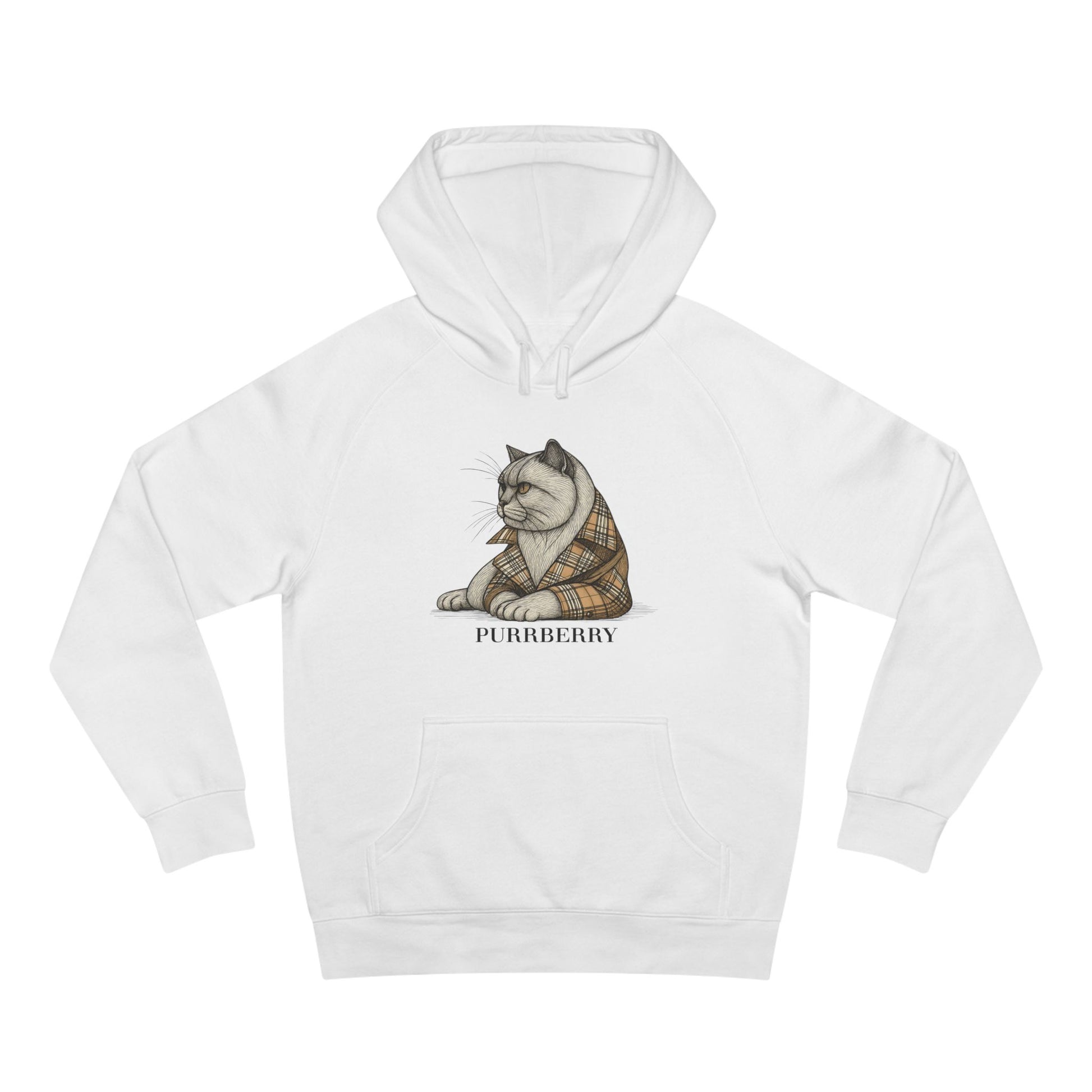 Cream-coated stare. Trenchcoat chic. This cat graphic hoodie reworks high fashion with cold-blooded feline precision and soft fleece rebellion.